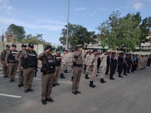 พร้อมข้าราชการตำรวจ สภ.กุยบุรีร่วม พิธี ปล่อยแถวกวาดล้างยาเสพติด No drug No dealers ผนึกกำลังชุมชนปลอดยาเสพติด