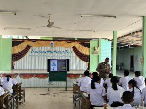 พ.ต.อ.วรวัชร แค้มวงค์ ผกก.สภ.กุยบุรี สั่งการให้ ด.ต.เสกสรรค์ อินทร์นิ่ม ครูตำรวจ D.A.R.E. สภ.กุยบุรี พร้อมด้วยนักเรียนนายสิบ รุ่นที่17 โรงเรียนตำรวจภูธร ภาค 7 ( นสต. ฝึกงาน ) เข้าดำเนินการให้ความรู้นักเรียน ชั้น ป.5 , 6