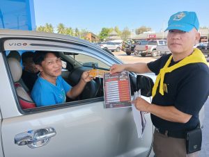 ดำเนินกิจกรรมจิตอาสา ประชาสัมพันธ์ รณรงค์ การขับขี่อย่างปลอดภัย โดยการแจกแผ่นพับและ