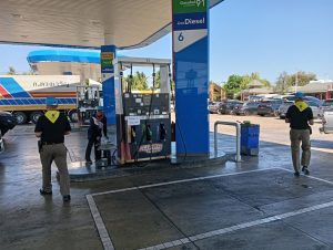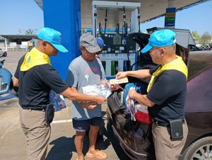 สติ๊กเกอร์ต่างๆ ภายใน ปั้มน้ำมัน ปตท.กุยบุรีและสนับสนุนการปฏิบัติหน้าที่ อำนวยความสะดวกการจราจร