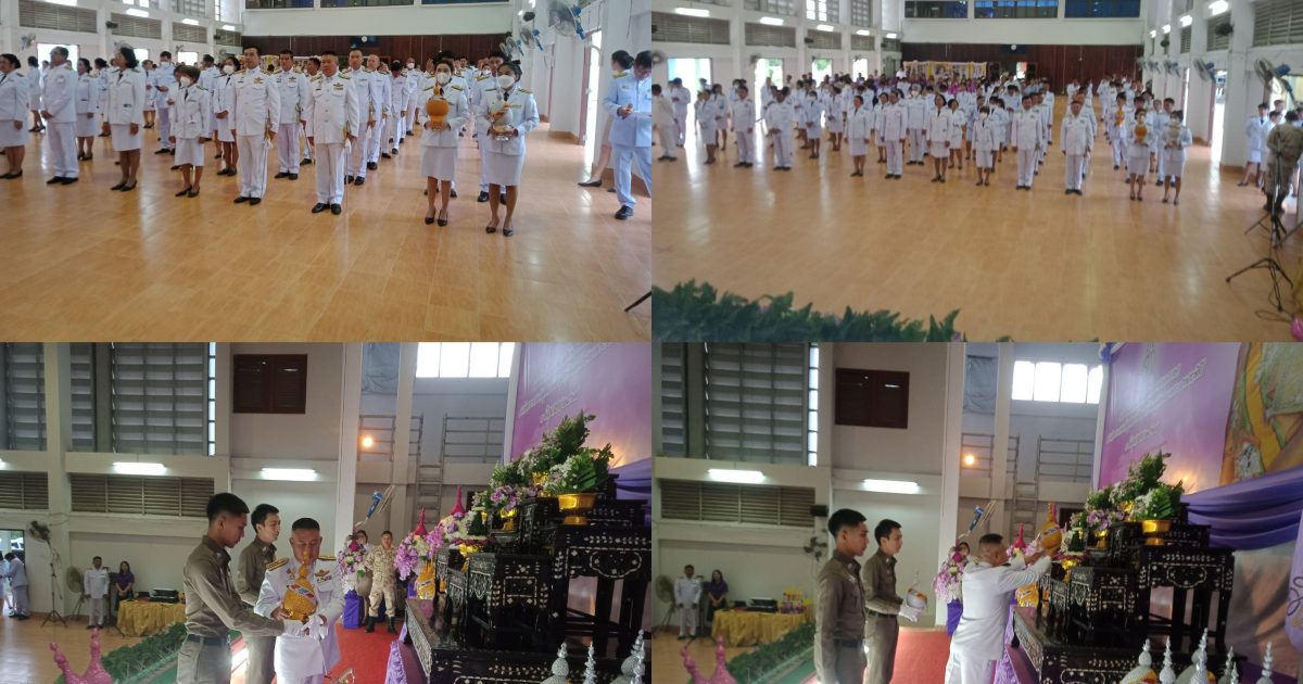 พร้อมด้วยข้าราชการตำรวจสภ.กุยบุรี เข้าร่วมพิธีถวายเครื่องราชสักการะและวางพานพุ่มเงิน – พุ่มทอง และพิธีจุดเทียนถวายพระพรชัยมงคล เนื่องในวันเฉลิมพระชนมพรรษาสมเด็จพระนางเจ้าฯพระบรมราชินี