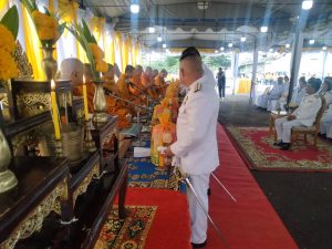 วันที่ 28 กรกฎาคม 2568 เวลา 07.30 น.พ.ต.อ.วรวัชร แค้มวงค์ ผกก.สภ.กุยบุรี พร้อมด้วย พ.ต.ท.เสน่ห์ สำเนียงสูง รอง ผกก.ป.สภ.กุยบุรี และข้าราชการตำรวจ สภ.กุยบุรี ร่วมกับ อ.กุยบุรี ประกอบพิธี มทำบุญตักบาตรถวายเป็นพระราชกุศล ณ บริเวณหน้าสถานีรถไฟอำเภอกุยบุรี หมู่ที่ ๑ ตำบลกุยบุรี อำเภอกุยบุรี จังหวัดประจวบคีรีขันธ์ เนื่องใน วันเฉลิมพระชนมพรรษา พระบาทสมเด็จพระเจ้าอยู่หัว ๒๘ กรกฎาคม ๒๕๖๘