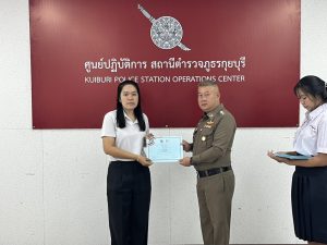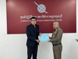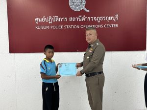วันอังคาร ที่ 10 มีนาคม 2569 เวลา09.00 น. พ.ต.อ.วรวัชร แค้มวงค์ ผกก.สภ.กุยบุรี พร้อมด้วย พ.ต.ท.เสน่ห์ สำเนียงสูง รอง ผกก.ป.สภ.กุุยบุรี พ.ต.ท.วีรเมศว์ วีระสุธีกุล รอง ผกก.สส.สภ.กุยบุรี พ.ต.ท.ทินพรรณ สุจจานันท์ สวป.สภ.กุยบุรี พ.ต.ทศพร ผจญจิตต์ สว.สส.สภ.กุยบุรี ร่วมกันมอบใบประกาศเกียรติคุณให้กับโรงเรียนบ้านปากเหมือง มีนายวสันต์ สืบสุทธา ผอ.โรงเรียนบ้านปากเหมือง พร้อมด้วย น.ส.ราตรี เปรมสุข ครูประจำชั้น ป.6 และน.ส.ธัญญาพร ปัญญาหาร ครูประจำชั้น ป.5 พร้อด้วย นักเรียน ชั้น ป.5,ป.6