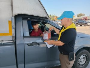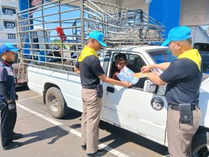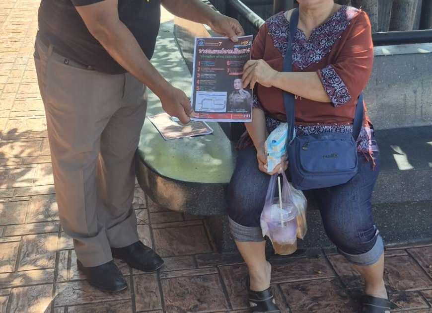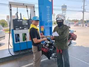 ดำเนินกิจกรรมจิตอาสา ประชาสัมพันธ์ รณรงค์การขับขี่อย่างปลอดภัยโดยการแจกแผ่นพับและ