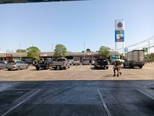 สติ๊กเกอร์ต่างๆ ภายในปั้มน้ำมัน ปตท.กุยบุรีในช่วงเทศกาลสงกรานต์ประจำปี พ.ศ. ๒๕๖๙