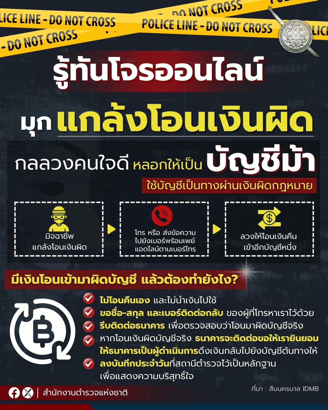มิจฉาชีพแกล้งโอนเงินผิด ⛔️โทร หรือส่งข้อความมาตามเบอร์ที่ตรงกับบัญชีพร้อมเพย์ หรือแอดไลน์มาแจ้งว่าโอ