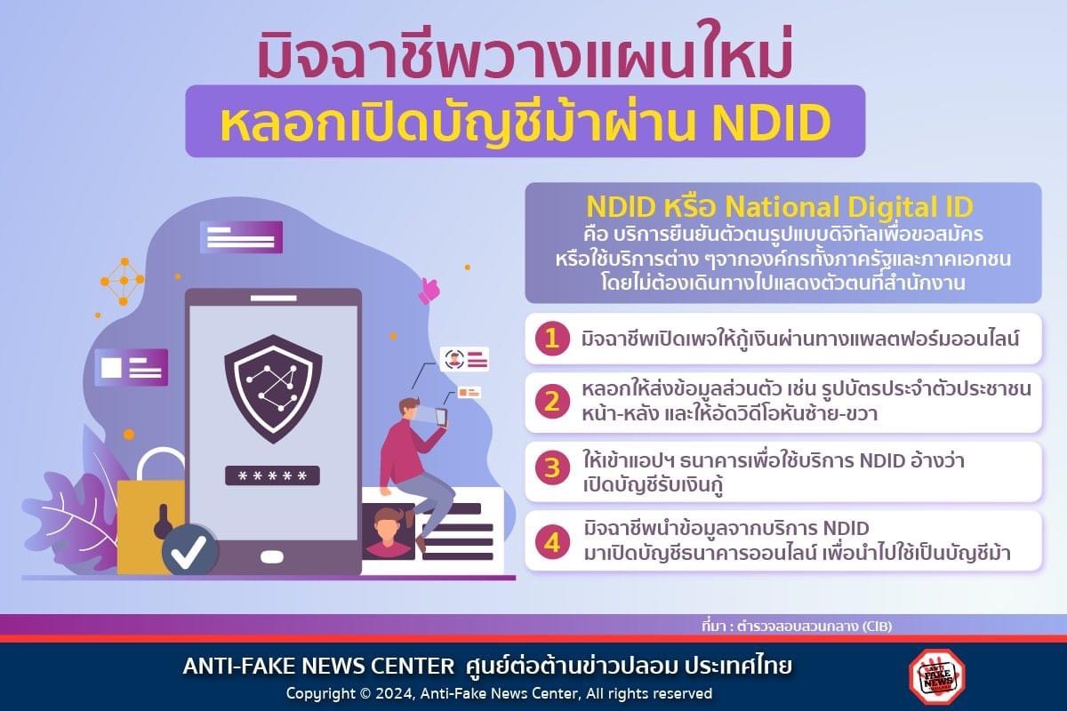มิจฉาชีพวางแผนใหม่ หลอกเปิดบัญชีม้าผ่าน NDID NDID หรือ National Digital ID คือ บริการยืนยันตัวตนรูปแ